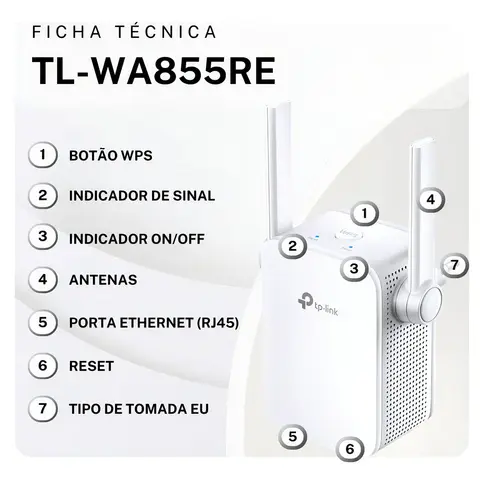 Repetidor De Sinal Wifi Tp-link 300mbps Tl-wa855re